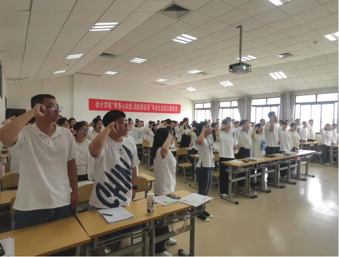 大会在庄严的宣誓声中结束,与会毕业生党员佩戴党徽,面向党旗,共同重温入党誓词,表达了为共产主义事业奋斗终身的理想和信念。