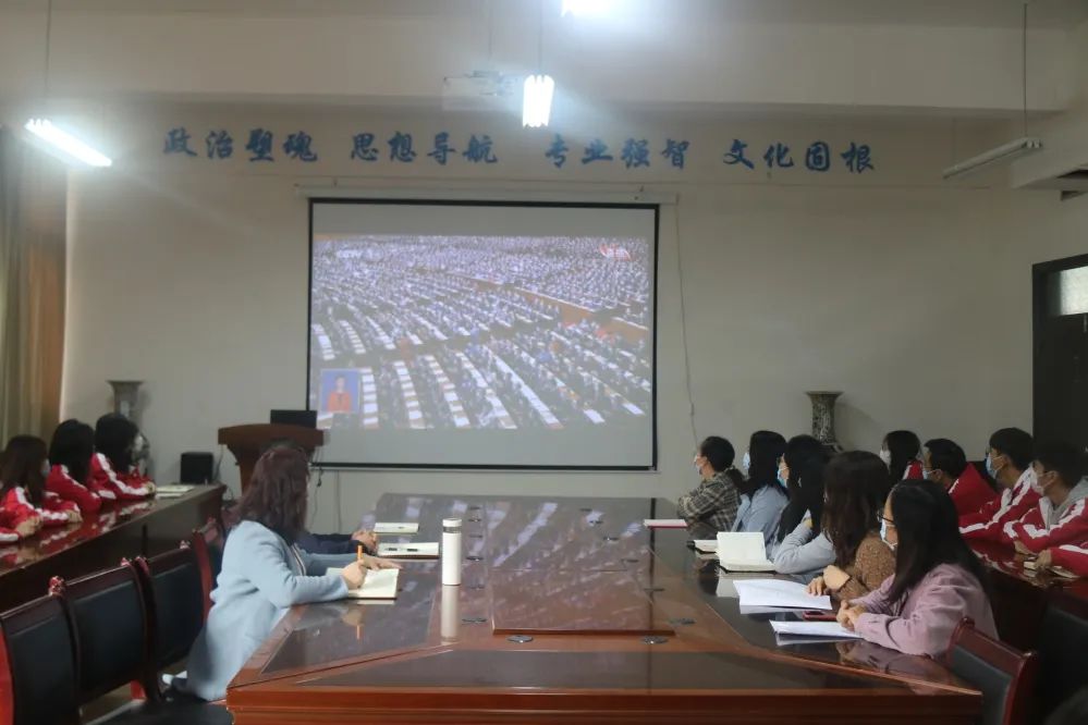 为迎接党的二十大召开,全面了解党的二十大盛况,10月16日上午,2138cc太阳集团官网入口党委书记聂永刚、党委副书记胡闽、党委副书记黄忠莉、各年级辅导员及公司员工干部代表齐聚一堂,在崇德楼206会议室集中观看党的二十大开幕会,其余师生通过线上或居家观看等多种方式组织观看,做到观看直播全面覆盖,共同见证这一历史性时刻。