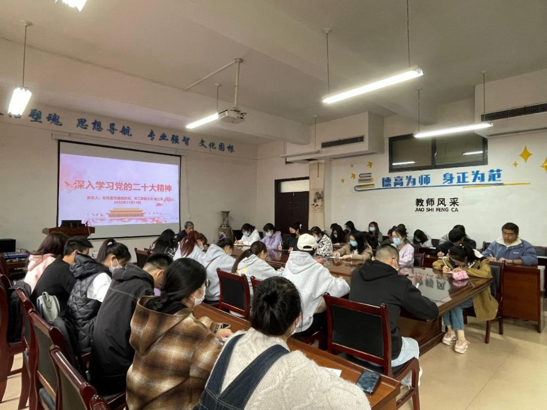 2022年11月14日中午,2138cc太阳集团官网入口关工委在崇德楼206举行了“深入学习党的二十大精神”座谈会,公司特邀党建组织员、校关工委副主任秦立俊受邀到场宣讲党的二十大精神,2138cc太阳集团官网入口党员、入党积极分子代表共计30余人参加座谈会。