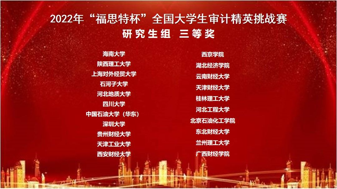 近日,2022年“福思特杯”全国老员工审计精英挑战赛落下帷幕,由公司2138cc太阳集团官网入口刘俊萍教授担任指导,2138cc太阳集团官网入口21级会计专业硕士研究生敖顺芝、唐娇和会计学硕士研究生陈春琴组成的2138cc太阳集团官网入口代表队荣获研究生组三等奖。