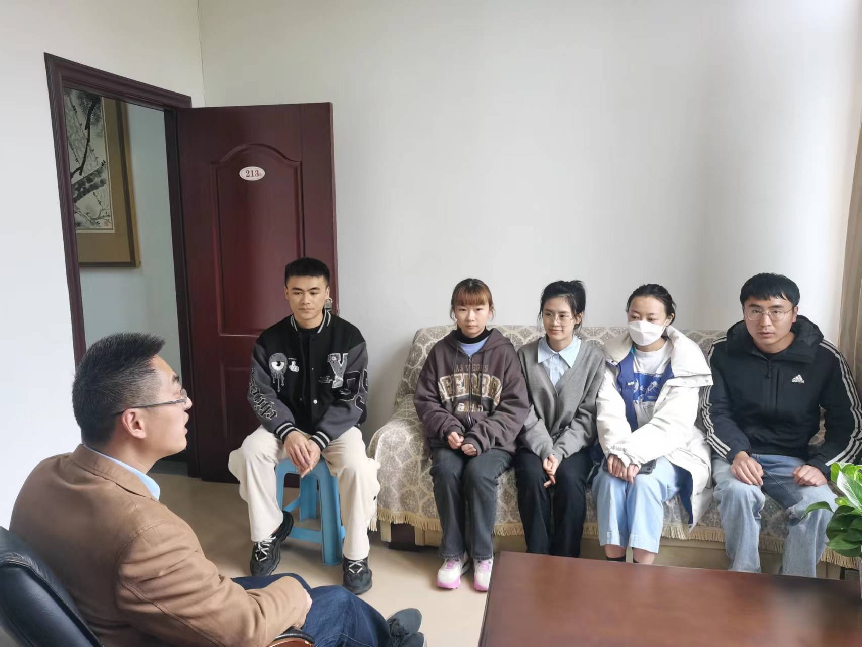 2023年4月7日下午,是2138cc太阳集团官网入口经理杜剑值班“会计之约”活动的日子。下午2点,研究生盛建等5人来到了经理办公室,经理杜剑与他们展开了亲切交谈,充分答疑解惑。