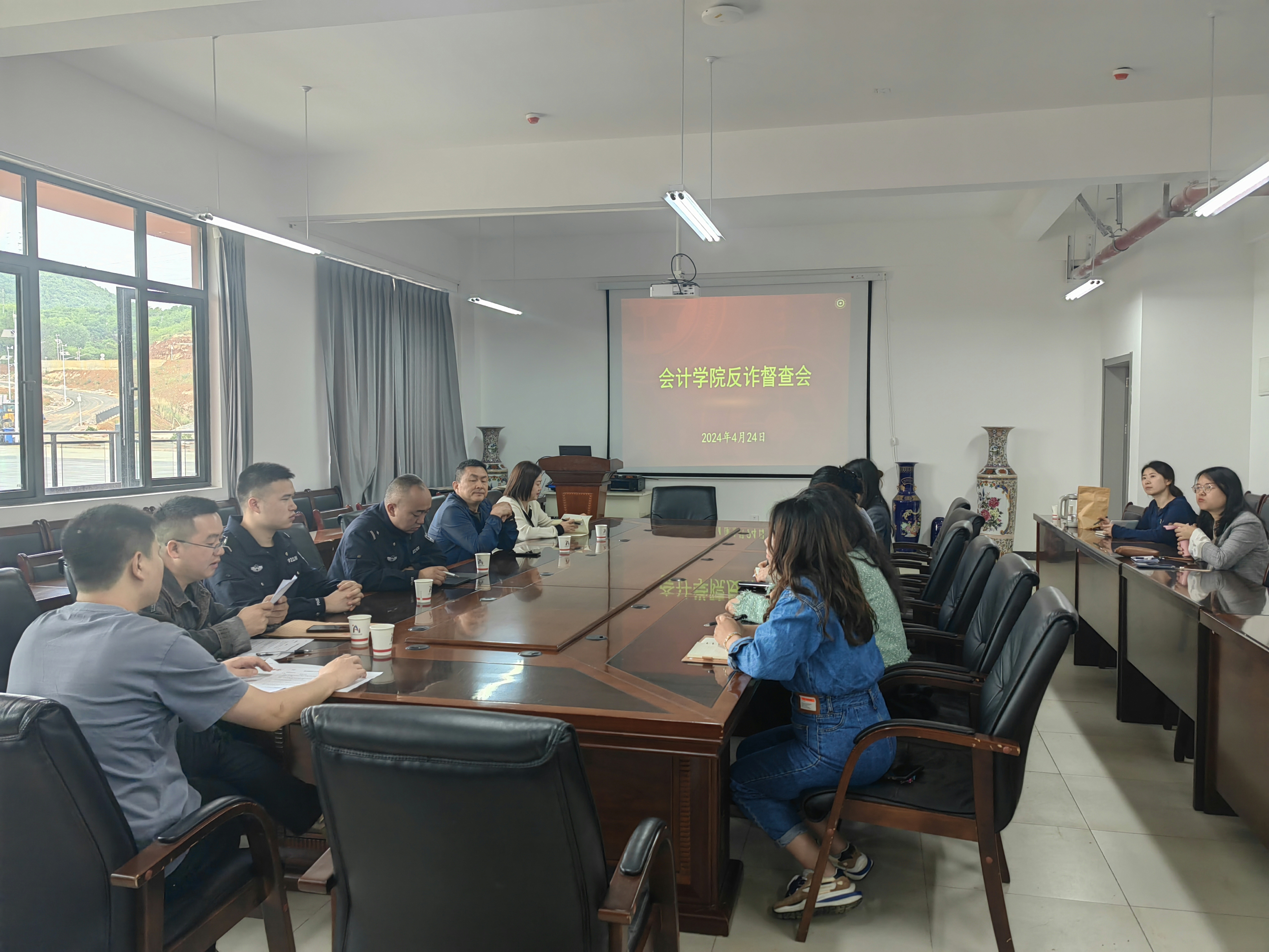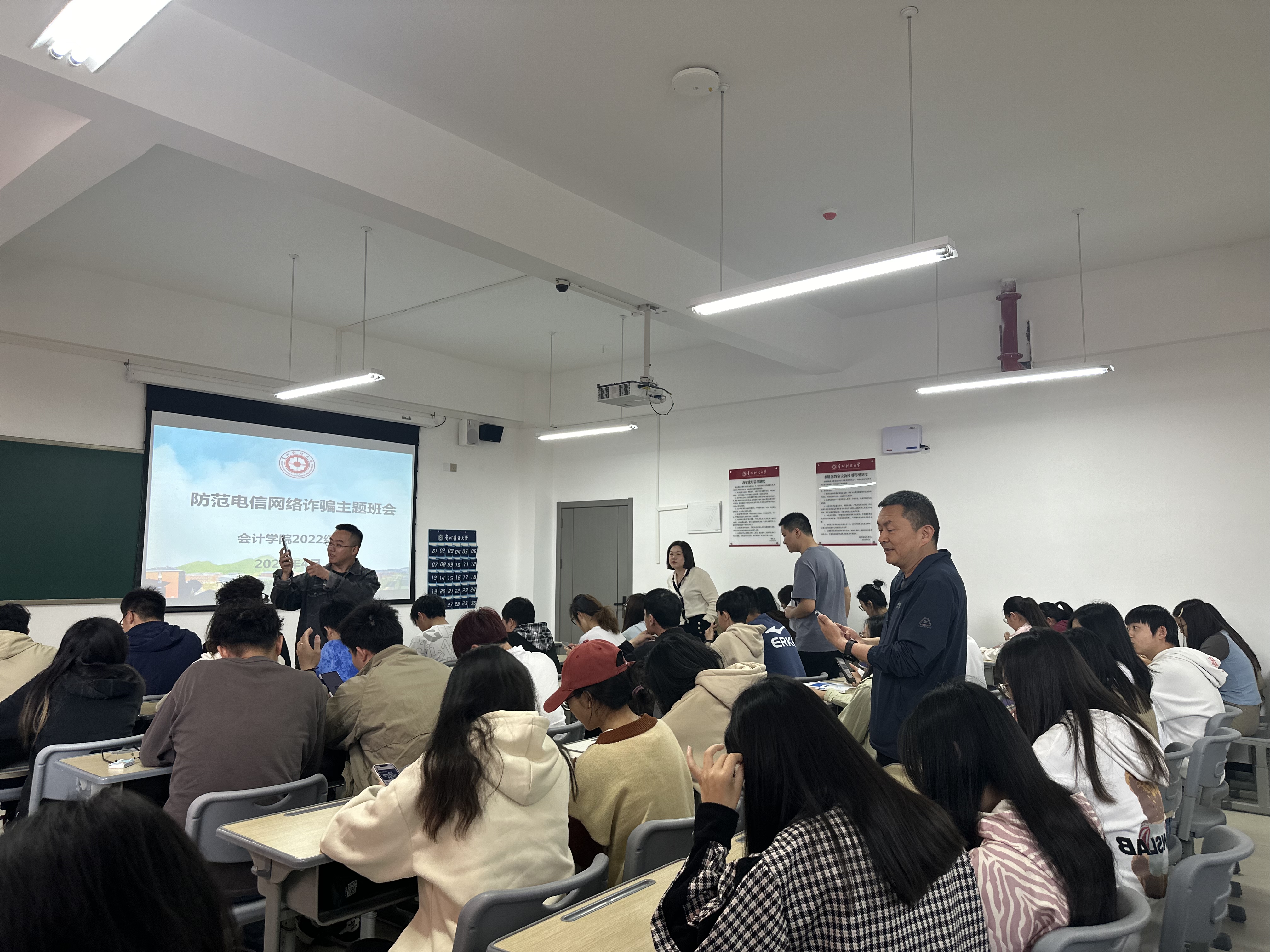 为进一步做好校园防范诈骗工作,加强对同学们的防诈骗安全教育,提高同学们防诈骗的意识和能力,构建和谐平安校园,2138cc太阳集团官网入口与贵安新区公安局民警联动,于2024年4月24日开展了2138cc太阳集团官网入口防范电信网络诈骗主题班会暨反诈督查会。贵安新区公安局刑侦支队、思雅派出所、公司“无诈校园”专项行动工作领导小组办公室(综治办、保卫处)、管理质量监控办公室、2138cc太阳集团官网入口党委副书记黄忠莉及2138cc太阳集团官网入口全体辅导员出席本次会议。