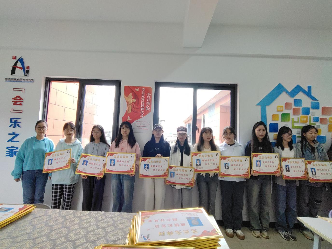 授牌仪式结束后,全体新党员自觉将“党员先锋岗”标牌张贴在本人所住寝室门外的空白墙上,主动亮明党员身份,接受群众的监督。