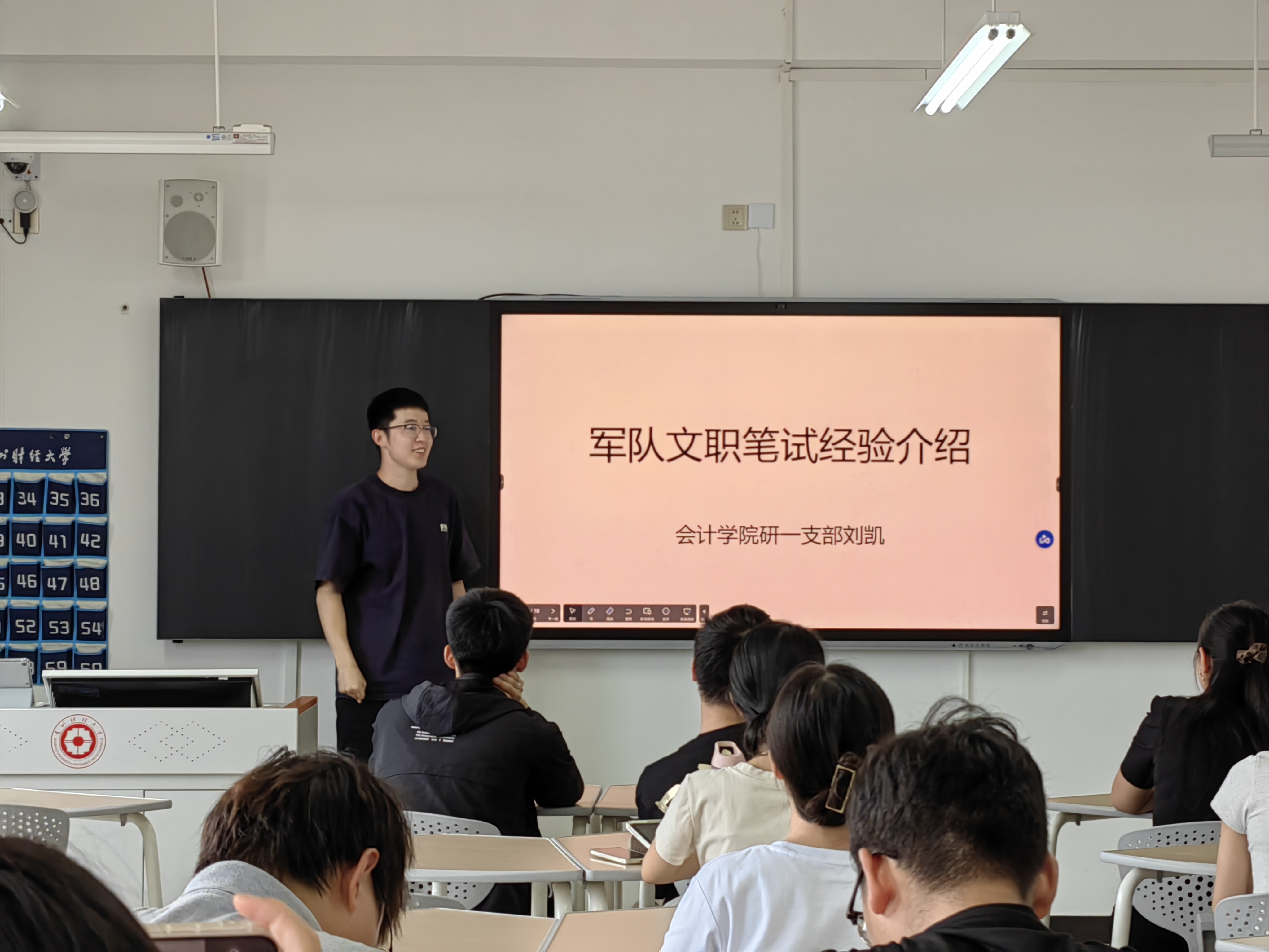 紧接着,刘凯同志围绕军队文职考试的特殊性,分享了体能训练、专业知识准备以及对军队文化的理解等多方面的经验,强调了综合素质培养的重要性,为有志于国防事业的同学点亮了明灯。