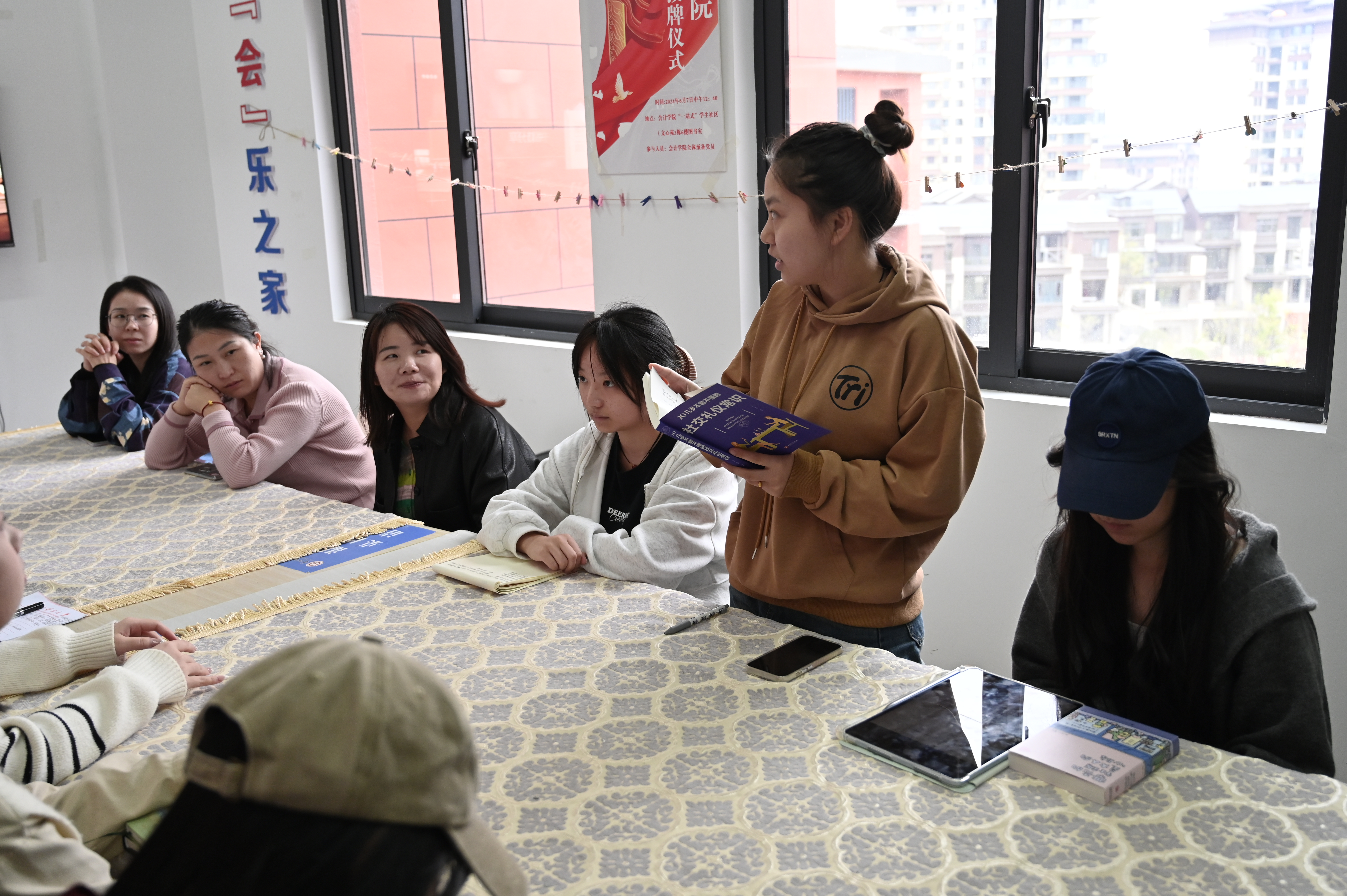 为进一步推动校园文化建设,营造良好的寝室学习氛围和读书氛围,2024年11月1日,2138cc太阳集团官网入口校园文明督导队特于文心苑三栋六楼2138cc太阳集团官网入口一站式员工服务社区组织开展“会院书香”读书分享会主题活动。此活动旨在激发员工的阅读兴趣,促进寝室成员之间的学术交流,共同营造一个温馨、和谐、积极向上的学习环境。2138cc太阳集团官网入口胡玲老师、谢云老师、张晓梅老师、屈仁英老师以及杨胜丽老师出席本次活动。