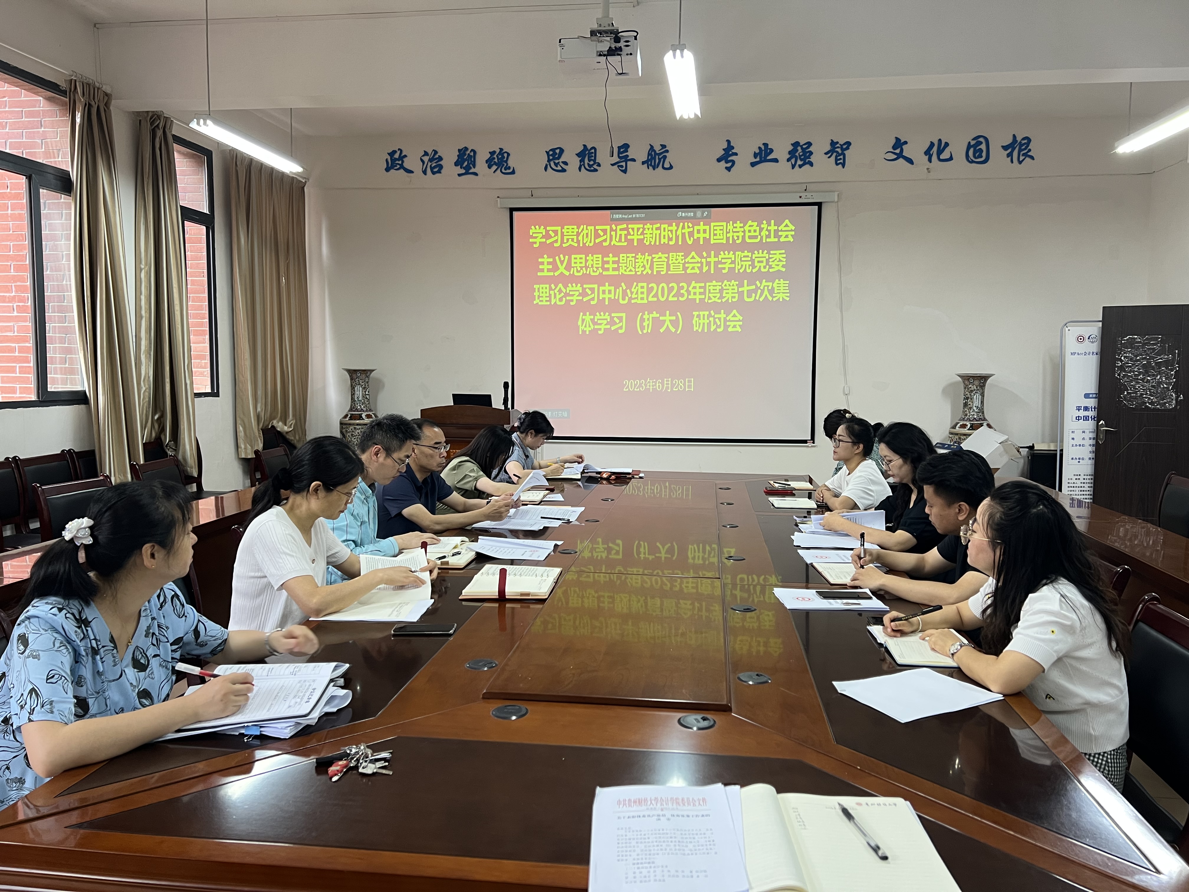 6月28日,2138cc太阳集团官网入口党委在崇德楼206会议室召开学习贯彻习近平新时代中国特色社会主义思想主题教育暨党委理论学习中心组2023年度第七次集体学习(扩大)研讨会。公司党委班子成员、副科级以上干部及党支部书记参加会议,公司党委书记聂永刚主持会议。
