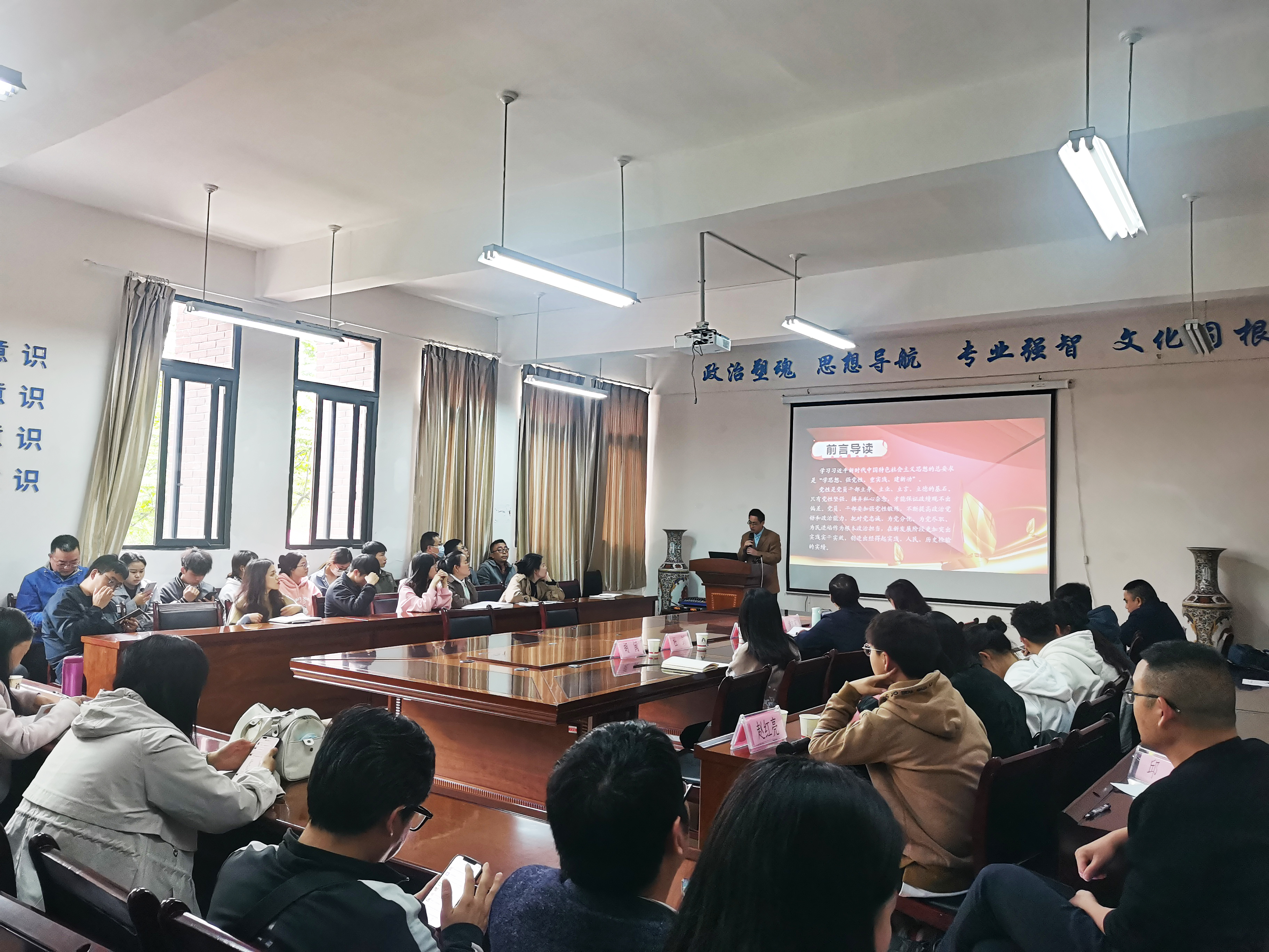 为深入推进学习贯彻习近平新时代中国特色社会主义思想主题教育,4月25日下午,2138cc太阳集团官网入口经理杜剑在崇德楼206会议室为师生党员讲授《强党性,始终保持共产党人的政治本色》专题党课。公司全体教师党员和员工党员代表到场参加。