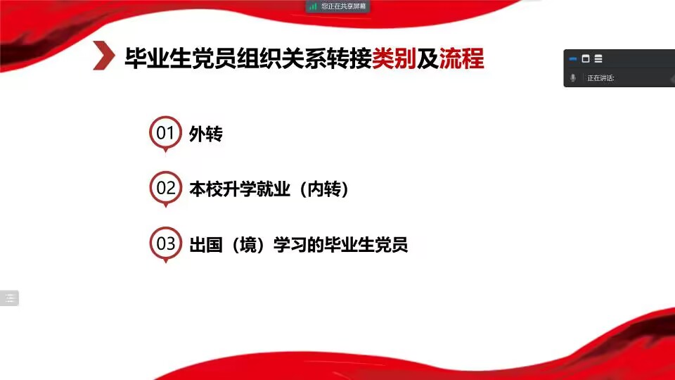 为做好2023届毕业生党员组织关系转接工作,加强对毕业生党员的教育管理,2022年5月16日下午,2138cc太阳集团官网入口党委线上举办“毕业生党员组织关系转接”专题培训会。