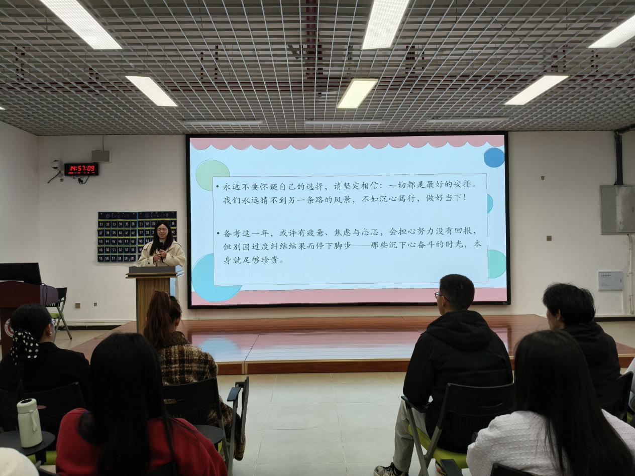 杜剑在讲话中指出,当下科技浪潮以排山倒海之势迅猛推进,AI与机器人正以前所未有的态势大规模替代人力工作。在这样的时代背景下,就业市场经历着深刻的变革,就业形势错综复杂、挑战重重,前景难言乐观。他语重心长地提醒同学们,唯有持之以恒地提升自身专业技能,全方位锤炼综合素养,方能在激烈的就业竞争中脱颖而出。杜剑强调,考研绝不仅仅是学历层次的纵向攀升,更是个人的身心成长与自我提升,是一段意义非凡的成长之旅。通过考研,能够更好地顺应时代发展的滚滚浪潮,是个体在风云变幻的时代中主动突围、实现逆袭的战略性抉择。