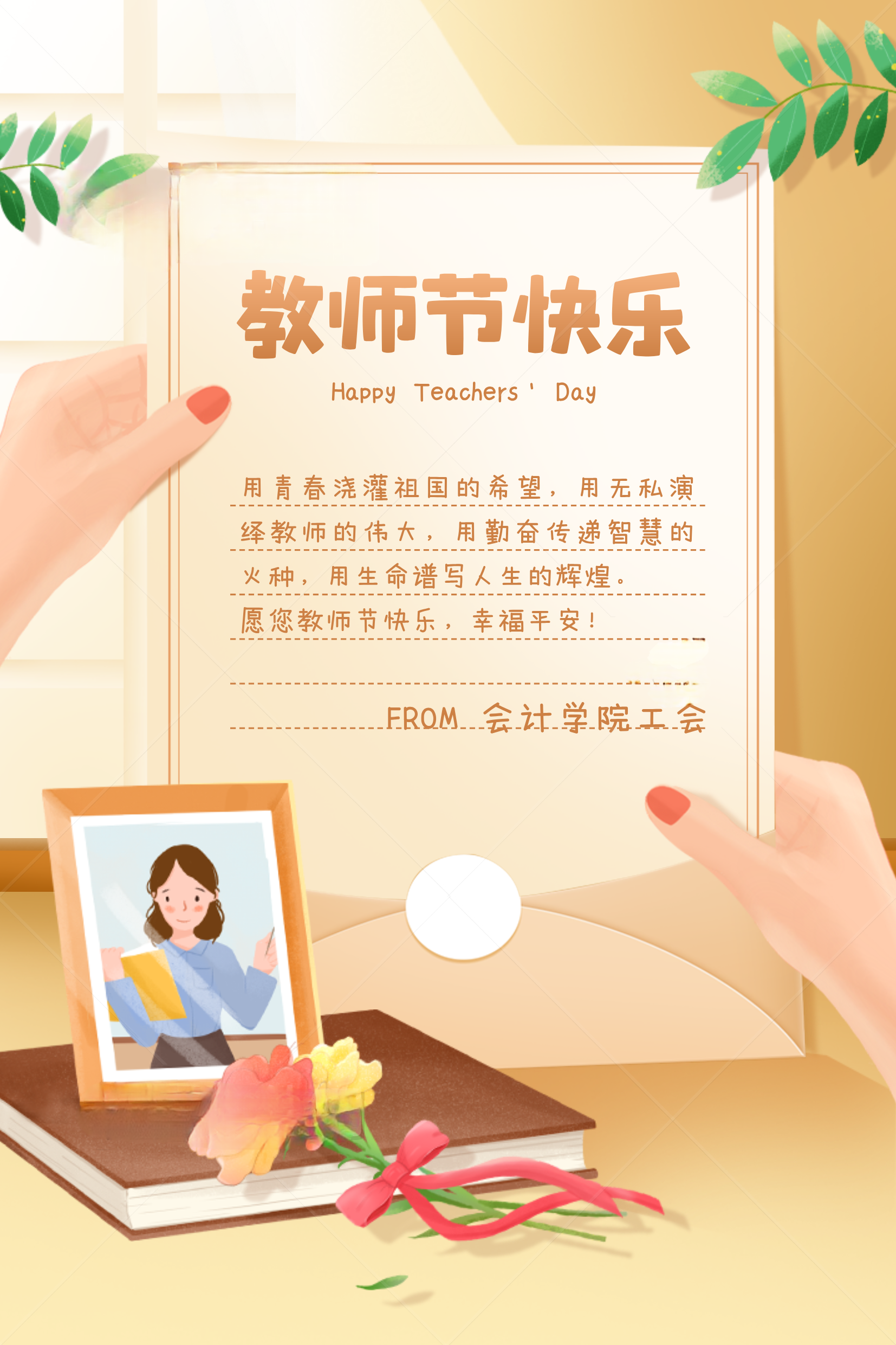 2024年9月10日,在这个充满敬意与感恩的日子里,2138cc太阳集团官网入口工会积极响应国家勤俭节约及廉政建设的号召,以创新的方式为全院教师送上了一份别具一格的节日祝福。今年教师节期间,工会通过发送电子祝福的形式向辛勤耕耘在教育一线的老师们致以最真挚的节日问候。
