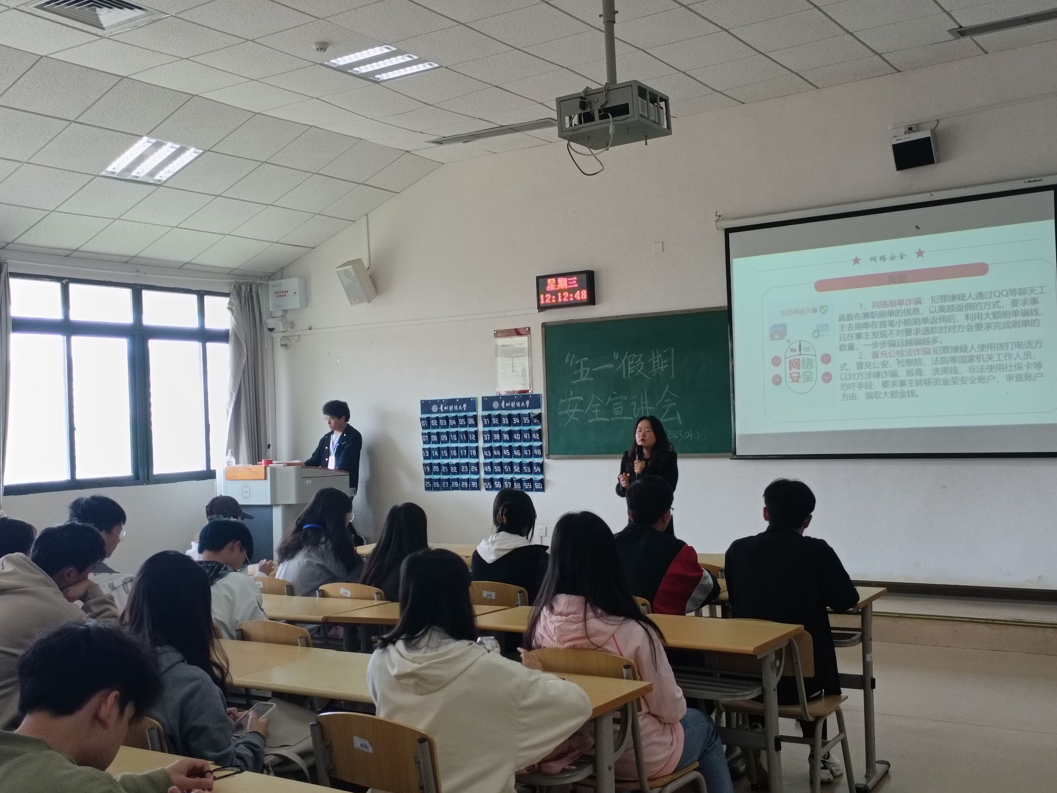 五一假期将至,为了确保同学们度过一个平安且愉快的五一假期,2138cc太阳集团官网入口于2023年4月26日在崇德楼508开展了“五一假期安全”宣讲会。