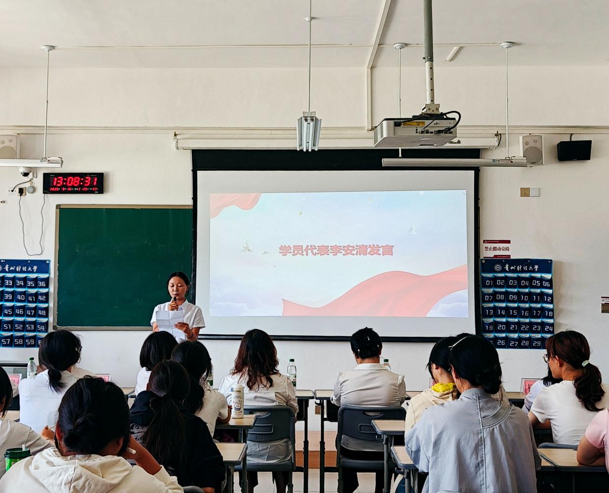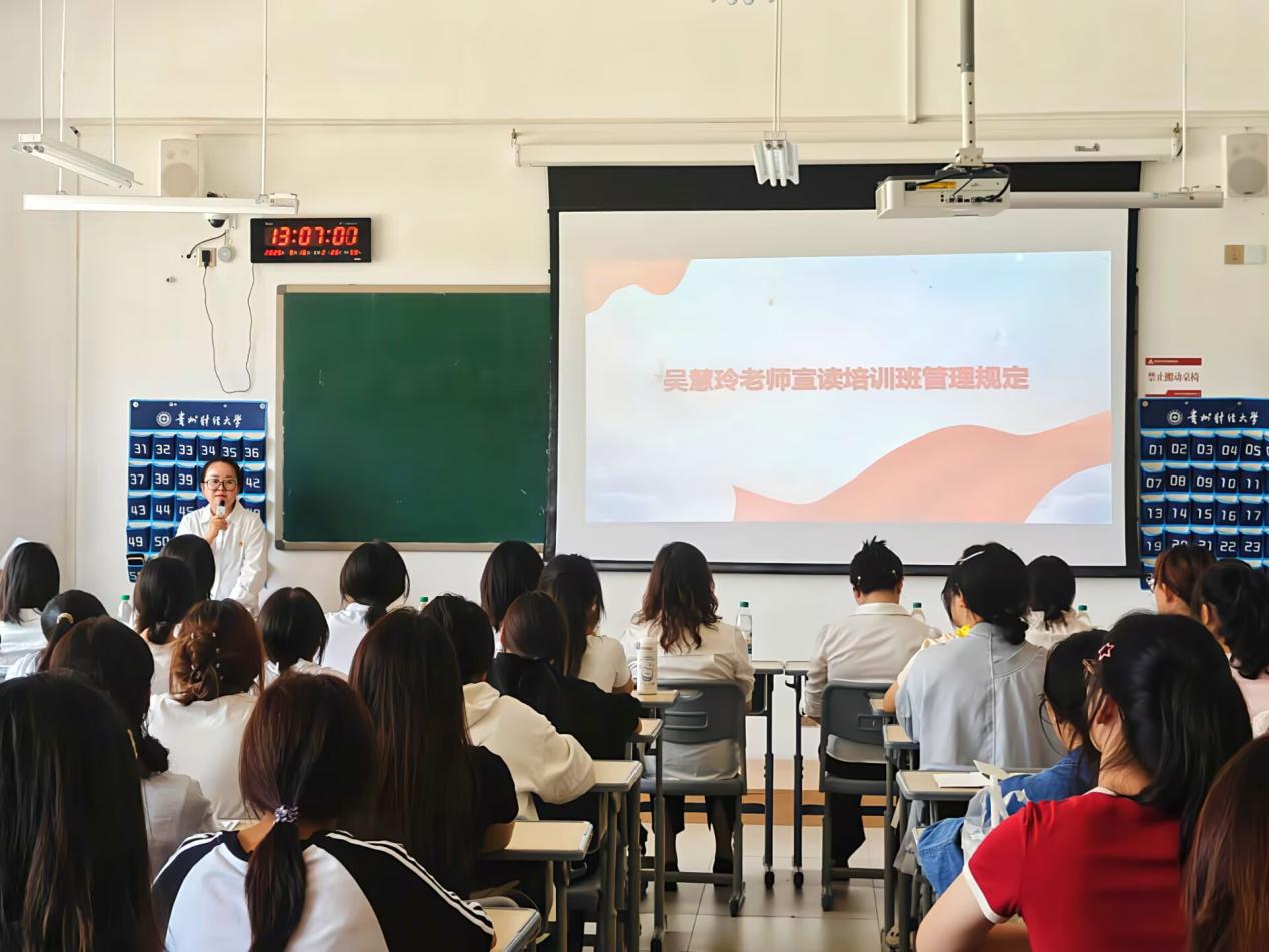 开班仪式伊始,全体成员齐唱中华人民共和国国歌。雄壮的旋律激荡人心,激励着每一位青年学子坚定理想信念,勇担时代使命。党委副书记黄忠莉老师在开班讲话中,对学员们提出三点希望:一是学以致用,知行合一,将所学付诸实践;二是严于律己,遵规守纪,展青年良好风貌;三是不负韶华,砥砺前行,争做新时代好青年。随后,团委书记吴慧玲老师宣读了团课培训的相关规定与要求,帮助学员清晰了解学习过程中的行为规范,明确纪律要求。紧接着,学员代表李安清同学发言,她表示将以高度的责任感和饱满的热情投入本次团课学习,严格要求自己,力求学深悟透、学以致用,以实际行动争做新时代优秀青年。最后,全体学员放声高唱中国共产主义青年团团歌,嘹亮的歌声展现了青年的青春活力与蓬勃力量,为本次团课注入了新的活力。