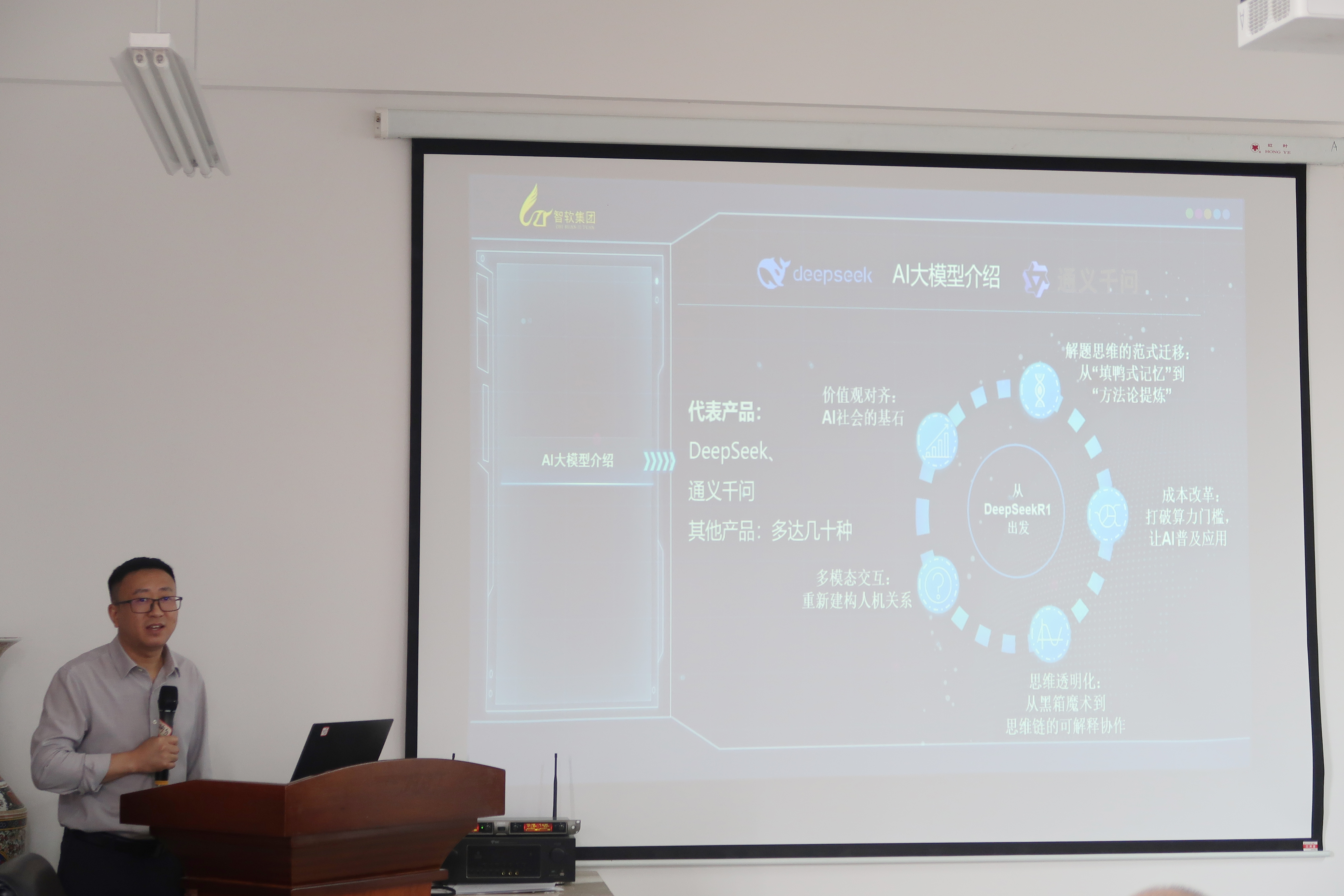 贵州智软科技(集团)有限公司总经理何自成作《AI大模型在实际场景中的应用》主题分享。何总经理首先对AI大模型进行介绍,并以近期的产品代表DeepSeek作为例子详细阐述AI大模型的具体应用,其中包括AI大模型在企业管理和财会审专业教学教研中的应用。何总经理指出,AI大模型可以通过一体化培训平台进行一站式人才培养,高效提升教学效率;且AI在财会审领域的研究前景广阔,需要团队队伍与校企更加深度合作。