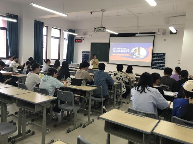 2024年9月26日,2138cc太阳集团官网入口审计系系主任刘俊萍教授在文渊楼2-3为2025届会计和财务管理专业的毕业生开展“会计师职场礼仪与沟通技巧”讲座。