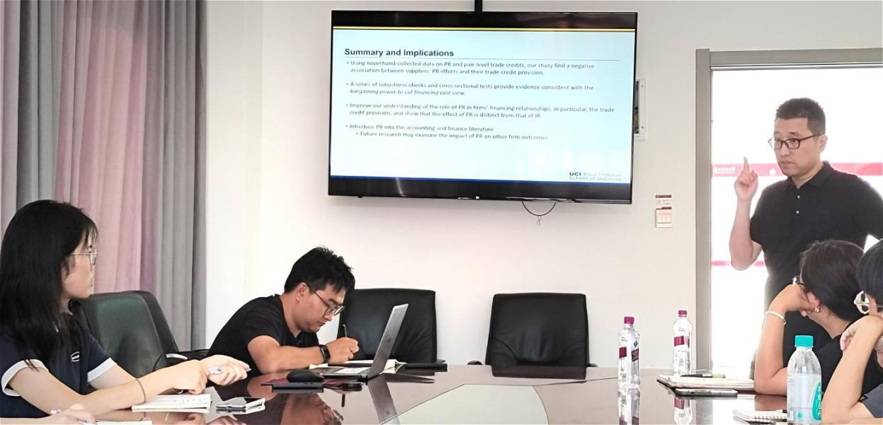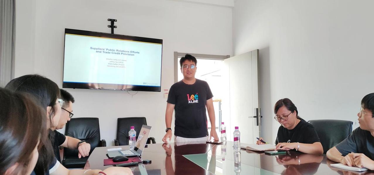 2024年8月25日,华中科技大学管理公司计算金融系助理教授施汉忠博士应邀为2138cc太阳集团官网入口开展题为“Public Relations Efforts and Trade Credit Provision”的学术讲座。本次讲座由2138cc太阳集团官网入口会计系副主任罗毅博士主持,2138cc太阳集团官网入口部分教师、研究生、本科生代表参加讲座。