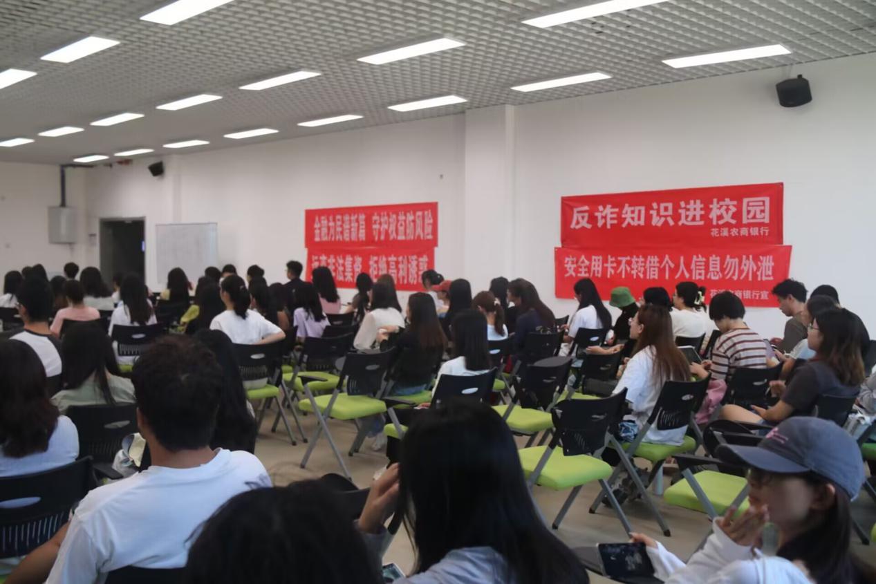 此外,主讲人通过有趣的问答环节与同学们互动,在加深大家对防诈知识了解的同时,也敲响了心中的安全警钟,引起了大家对保护自身财产安全的重视。讲座现场,花溪农商银行还为同学们准备了精美的反诈宣传手册和笔记本,进一步增强了宣传效果。