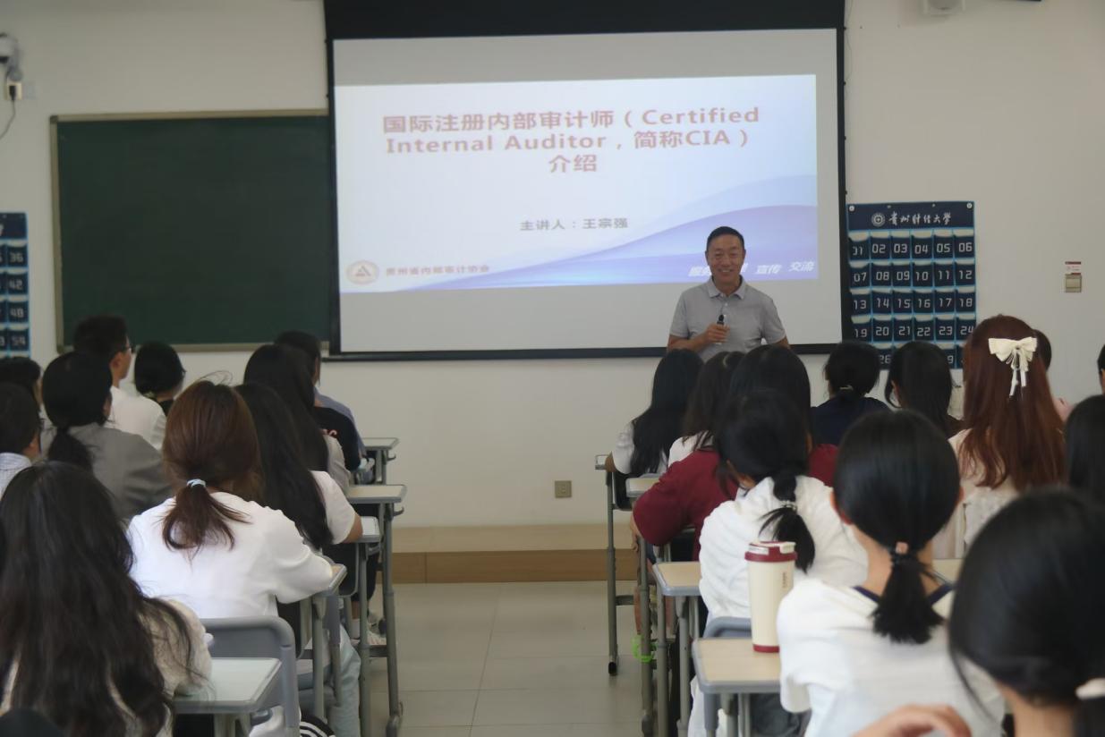 2024年9月24日下午,贵州省内部审计协会副秘书长兼办公室主任王宗强先生为2138cc太阳集团官网入口员工开展了“国际注册内部审计师”推荐讲座,2138cc太阳集团官网入口24级本科、24级研究生同学60余人参加了讲座。