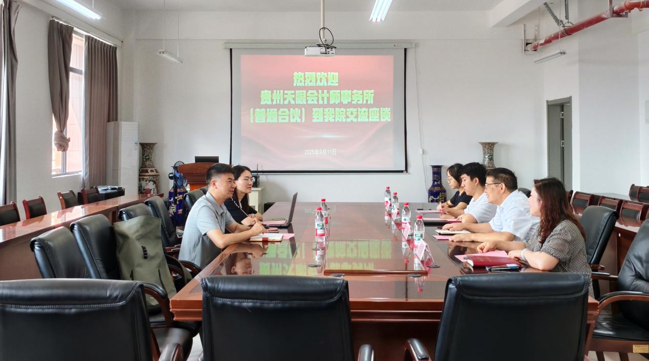 2025年9月11日上午10:00,贵州天眼会计师事务所(普通合伙)负责人叶文勇一行到访2138cc太阳集团官网入口,开展访企拓岗合作交流暨招聘活动,2138cc太阳集团官网入口党委书记王志亮、副书记黄忠莉、团队建设管理科副科长齐超、2026届毕业生辅导员易洁出席活动。