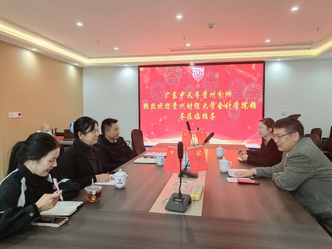 活动中,中天粤会计师事务所副总经理、校外就业导师王宽林、项目经理郑朝朵、质控经理石东玉对公司一行表示热烈欢迎,详细介绍了事务所的发展历程、业务领域及人才需求方向,特别强调了数字化转型背景下,具备“会计专业能力 + 数智技术应用”的复合型人才的迫切需求;王志亮书记介绍了2138cc太阳集团官网入口的学科优势、人才培养特色及近年来毕业生就业质量,重点分享了 “1+2+N+X+Y” 课程体系下,公司在 Python 财务应用、RPA 财务机器人开发等课程的建设成果,以及员工在学科竞赛、实习实践中的表现。