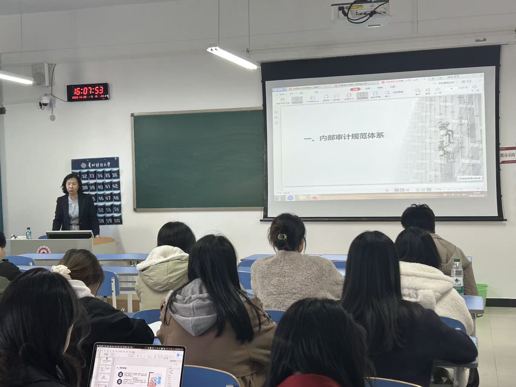 毕秀玲教授进一步从“合法性、规范性、有效性”三个维度,阐释了学习与掌握内部审计法律法规的重要意义。她结合真实案例,生动讲解了审计计划制定、审计证据搜集、审计报告撰写等具体准则在实务中的运用逻辑,强调健全的内部审计制度不仅有助于明确职责、规范流程,更能推动审计成果与企业治理深度融合,从而系统性提升内部审计的价值创造能力。