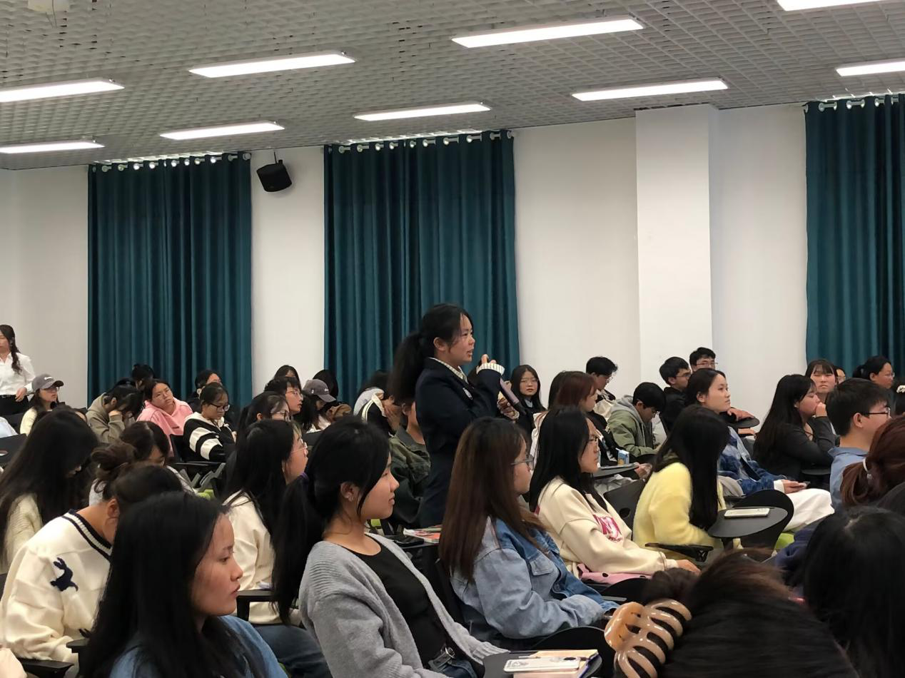 在现场答疑环节,同学们踊跃提问,问题包括考公备考、企业实习等。曹禀淳逐一进行了耐心解答并鼓励大家在大学期间要早做规划,朝着自己的目标勇往直前。活动最后,曹禀淳对母校提供的良好学习环境和发展平台表示感谢,同时,祝愿学弟学妹们付出的所有汗水都将浇灌出成功之花。