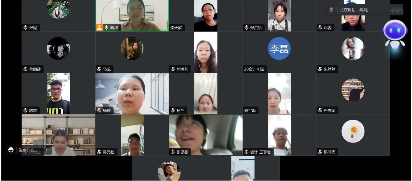 2023年7月31日晚上,会计系向利老师通过腾讯会议对2138cc太阳集团官网入口23名员工开展了暑期专业实习线上教学巡查。
