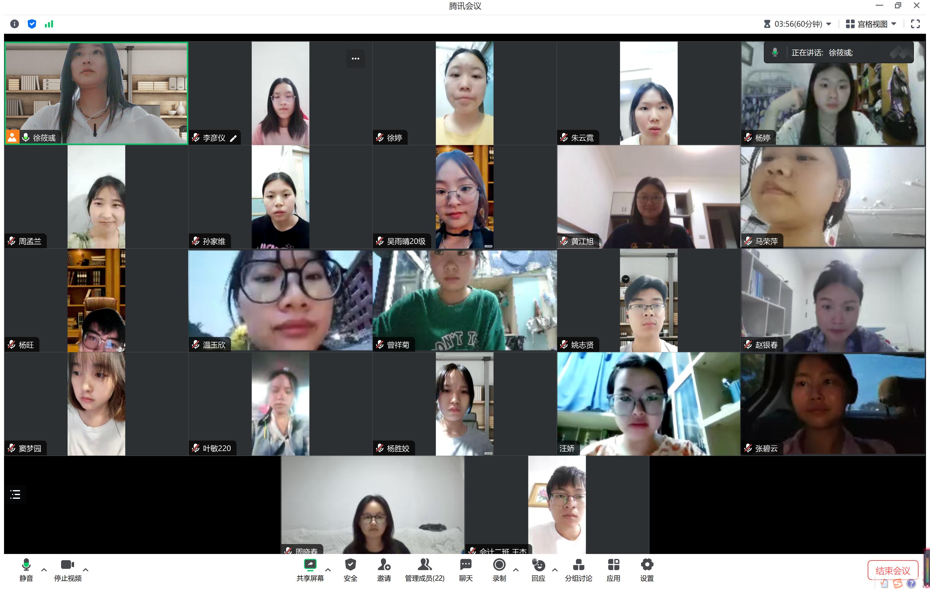 7月22日下午,会计系徐筱彧老师通过腾讯会议开展暑期专业实习线上教学巡查。