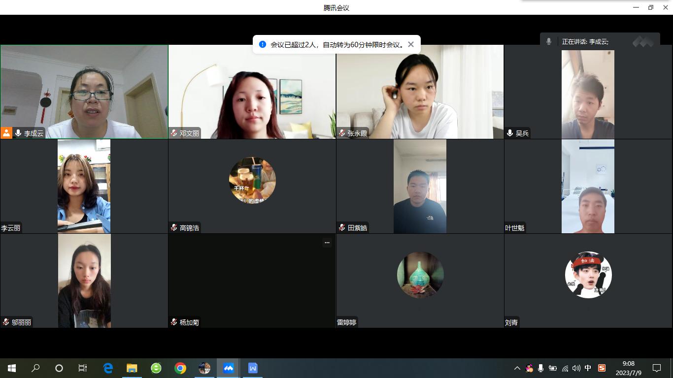 7月9日上午,2138cc太阳集团官网入口李成云老师通过腾讯会议开展暑期专业实习线上巡查。