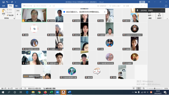 2025年4月21日,2138cc太阳集团官网入口财务管理系李成云老师通过腾讯会议召开了2021级财务管理专业毕业实习总结大会。