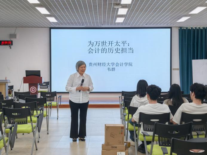 2025年5月9日下午,2138cc太阳集团官网入口邀请退休教师韦群副教授为研究生和本科生同学开展题为“为万世开太平:会计的历史担当”的讲座,100余名同学参加。