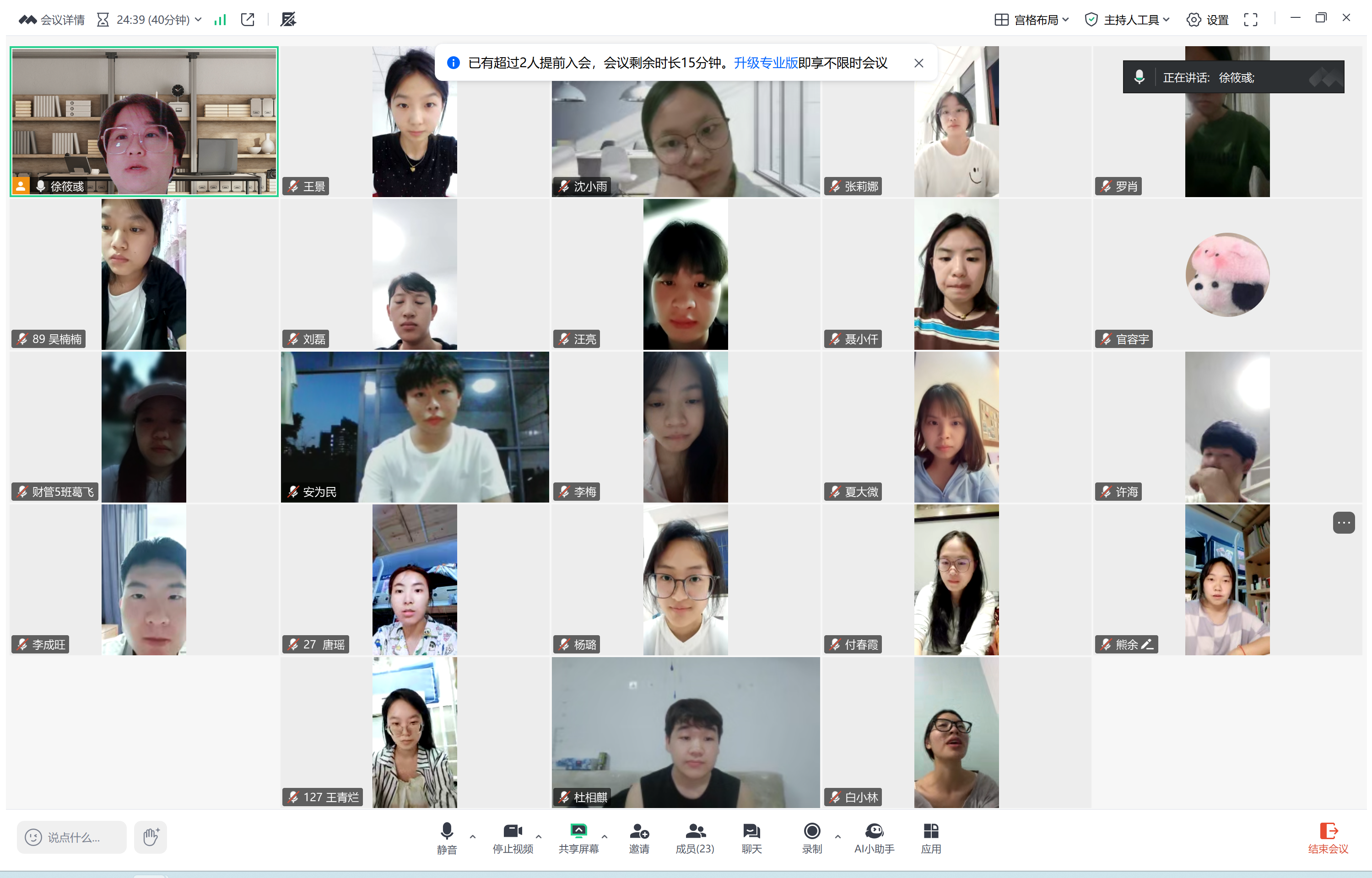 7月18日下午,会计系徐筱彧老师通过腾讯会议开展暑期专业实习线上教学巡查。
